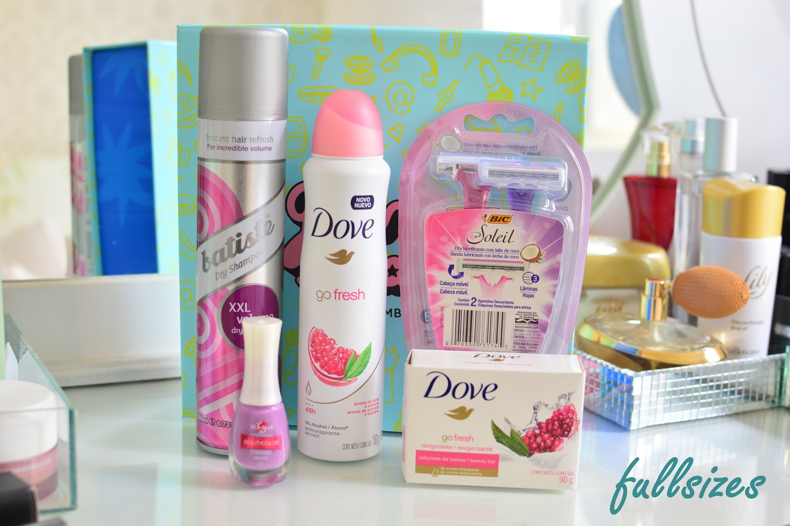 De fullsizes: Mais um produtinho da linha batiste, já deu pra montar a coleção Batiste. kk Esse vai para troca, um desodorante Dove, que também vai para troca, pois não posso usar. Sabonete Dove, esmalte e giletes Bic, muito boas por sinal. Recebi na glam anos atrás e sempre compro desde então. Batom LipDeluxe Eudora e lápis sombra da Dailus.